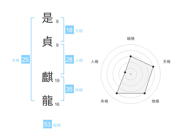 是貞 麒龍さんの地格は35画の4点!