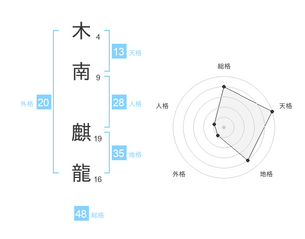 木南 麒龍さんの総格は48画の4点!