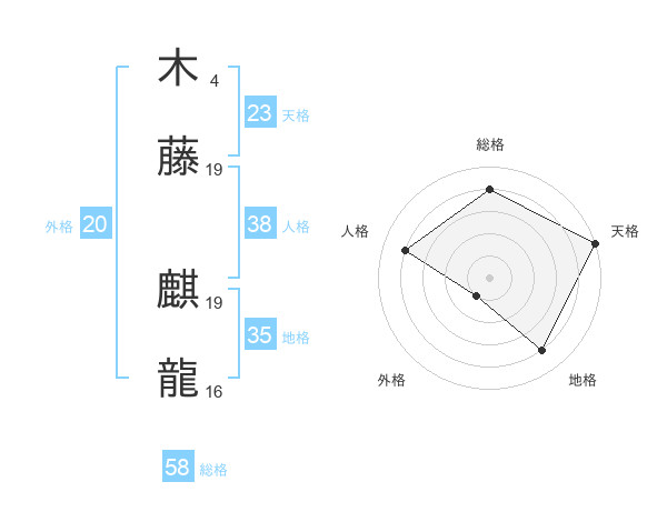 木藤 麒龍さんの総格は58画の4点!