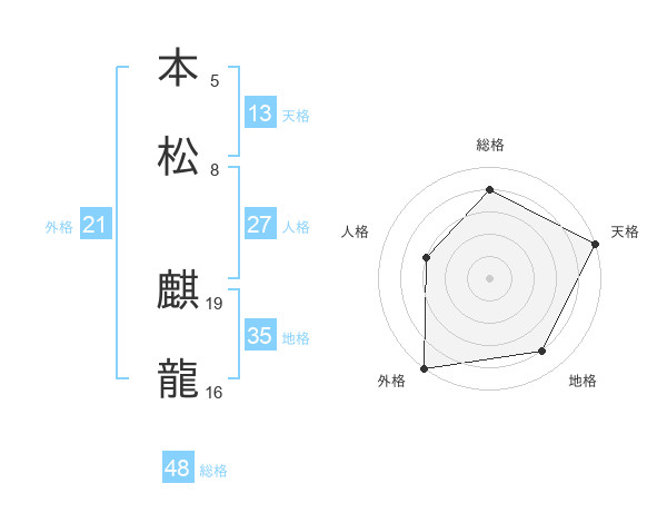 本松 麒龍さんの天格は13画の5点!