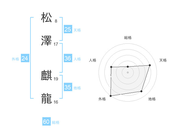 松澤 麒龍さんの外格は24画の5点!