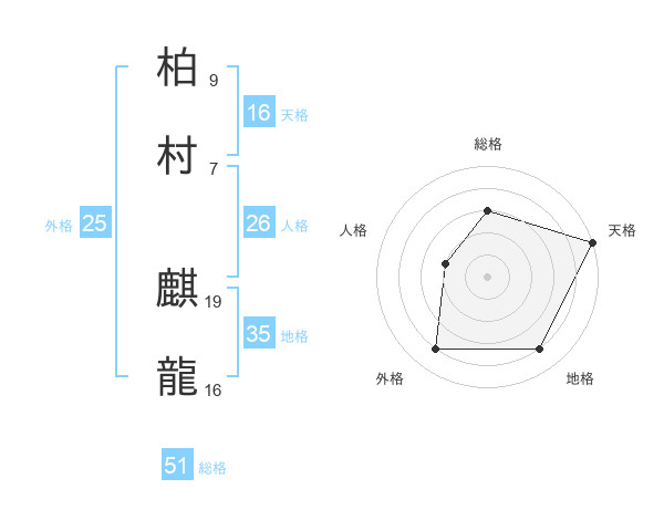 柏村 麒龍さんを姓名の画数から五運を鑑定