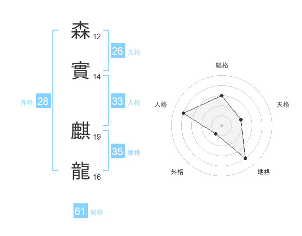 森實 麒龍さんの総格は61画の3点!