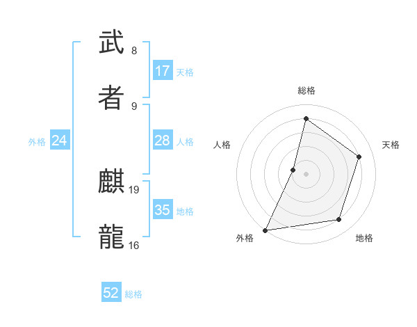 武者 麒龍さんの総格は52画の4点!
