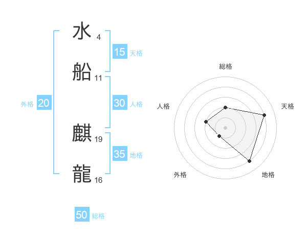 水船 麒龍さんを姓名の画数から五運を鑑定