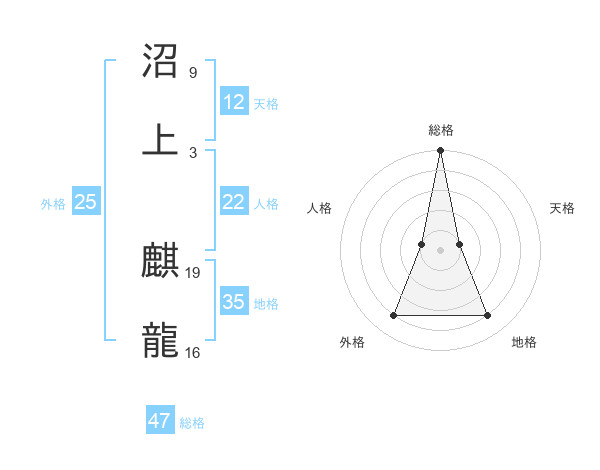 沼上 麒龍さんを姓名の画数から五運を鑑定