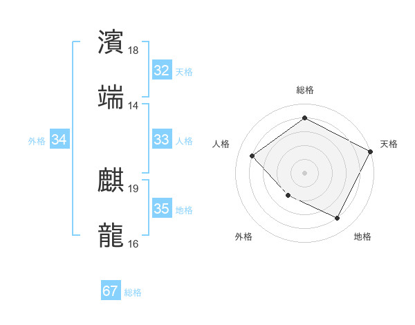 濱端 麒龍さんを姓名の画数から五運を鑑定