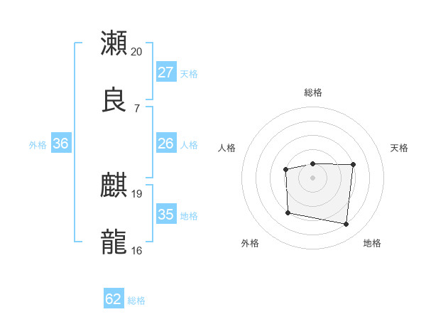 瀬良 麒龍さんの総格は62画の1点!