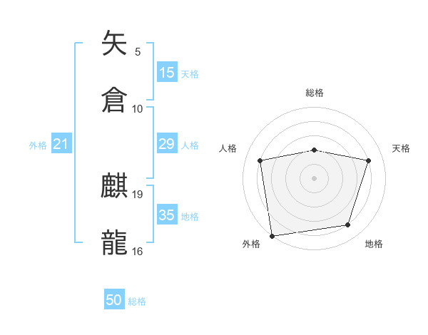 矢倉 麒龍さんの総格は50画の2点!