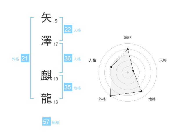 矢澤 麒龍さんの総格は57画の4点!