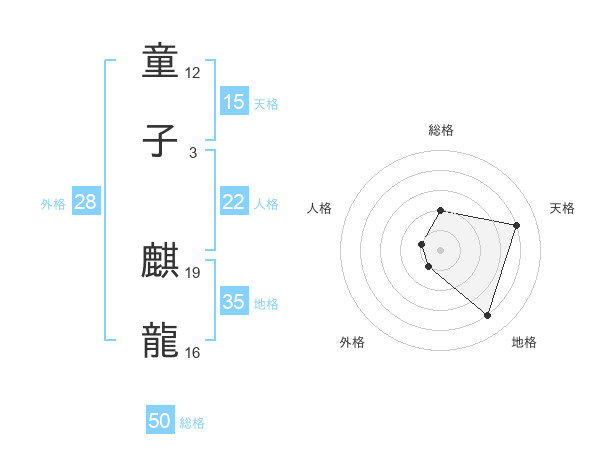 童子 麒龍さんを姓名の画数から五運を鑑定
