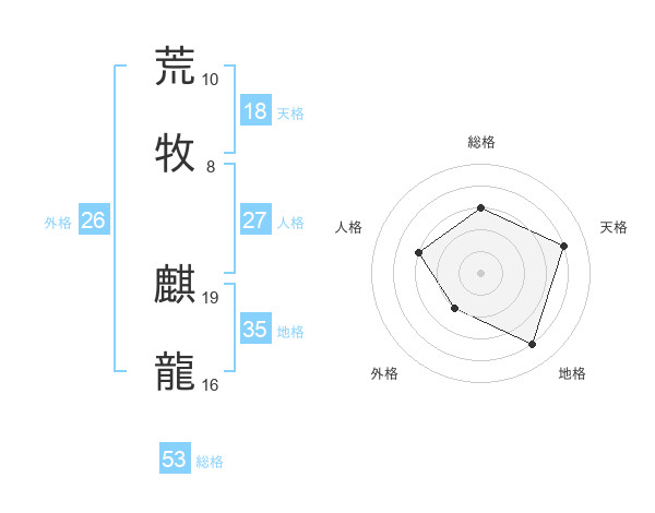 荒牧 麒龍さんを姓名の画数から五運を鑑定