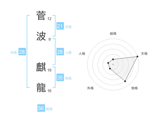菅波 麒龍さんを姓名の画数から五運を鑑定