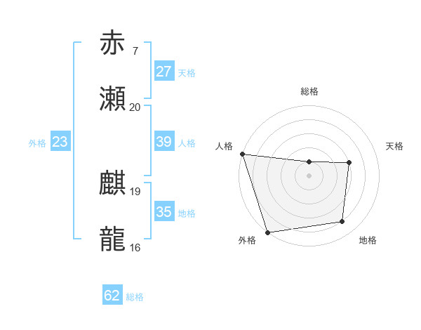 赤瀬 麒龍さんを姓名の画数から五運を鑑定