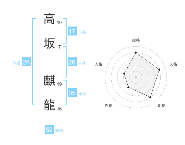 高坂 麒龍さんを姓名の画数から五運を鑑定