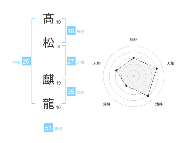 髙松 麒龍さんの総格は53画の3点!