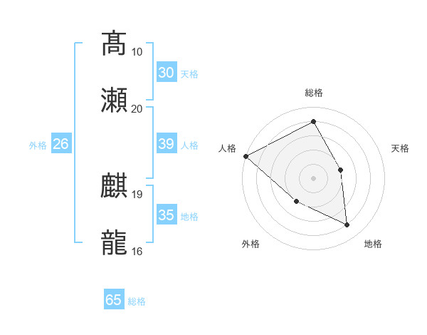 髙瀬 麒龍さんの総格は65画の4点!
