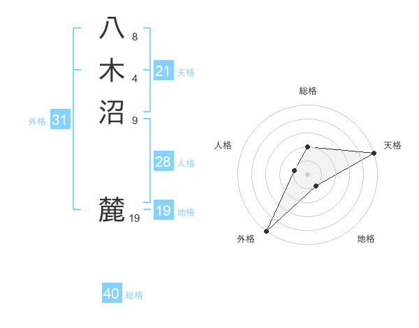 八木沼 麓さんを姓名の画数から五運を鑑定