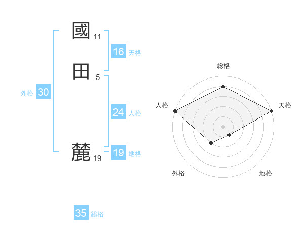 國田 麓さんの総格は35画の4点!
