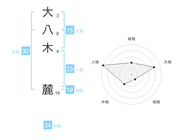 大八木 麓さんの天格は15画の4点!