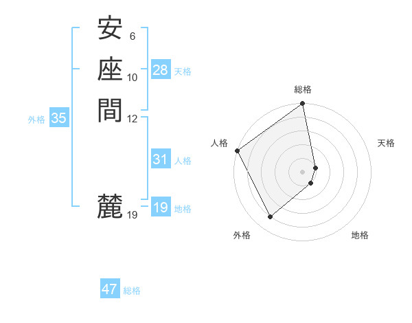 安座間 麓さんの総格は47画の5点!