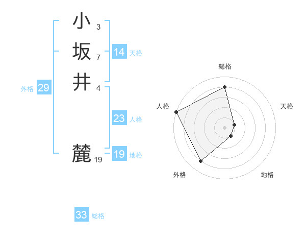 小坂井 麓さんの総格は33画の4点!