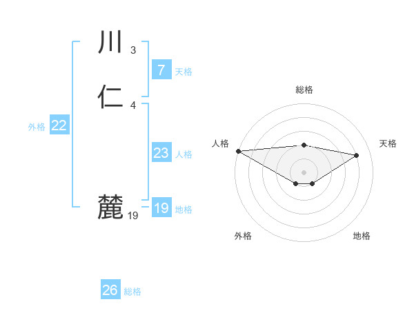 川仁 麓さんの総格は26画の2点!