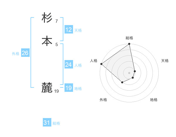 杉本 麓さんの総格は31画の5点
