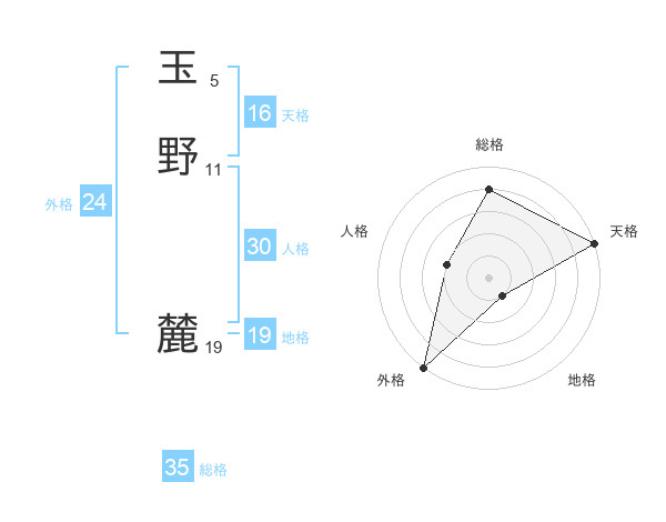 玉野 麓さんの総格は35画の4点!