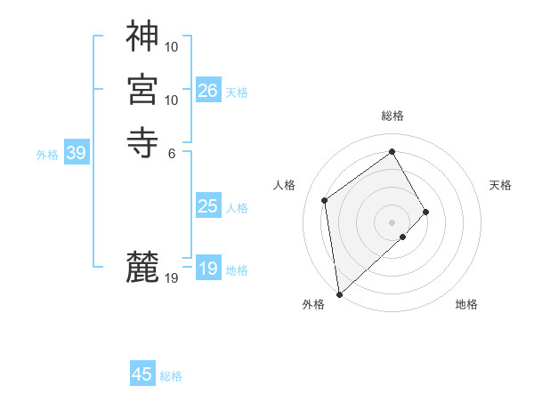 神宮寺 麓さんの総格は45画の4点!