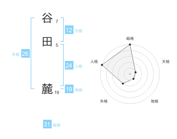谷田 麓さんの総格は31画の5点!