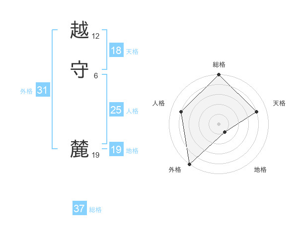 越守 麓さんの総格は37画の5点!