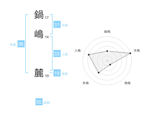 鍋嶋 麓さんの天格は31画の5点!