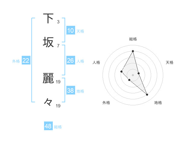 下坂 麗々さんを姓名の画数から五運を鑑定