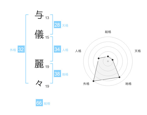 与儀 麗々さんを姓名の画数から五運を鑑定