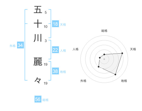 五十川 麗々さんの総格は56画の1点!