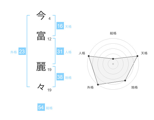 今富 麗々さんの外格は23画の5点!