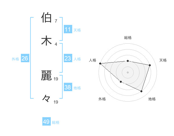 伯木 麗々さんの天格は11画の4点!
