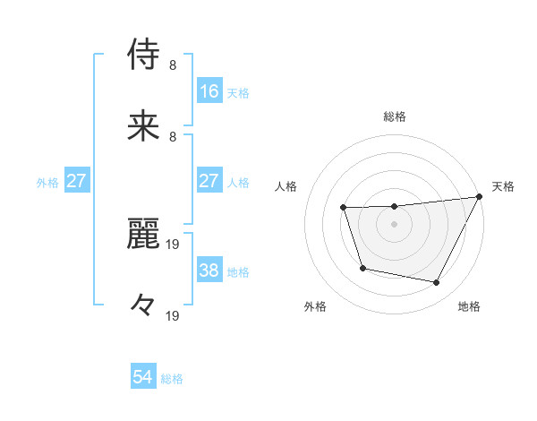 侍来 麗々さんの総格は54画の1点!