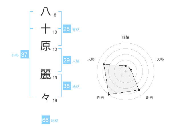 八十原 麗々さんを姓名の画数から五運を鑑定