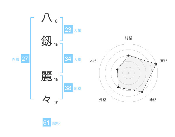 八釼 麗々さんの天格は23画の5点!