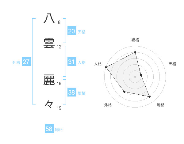 八雲 麗々さんの天格は20画の1点!