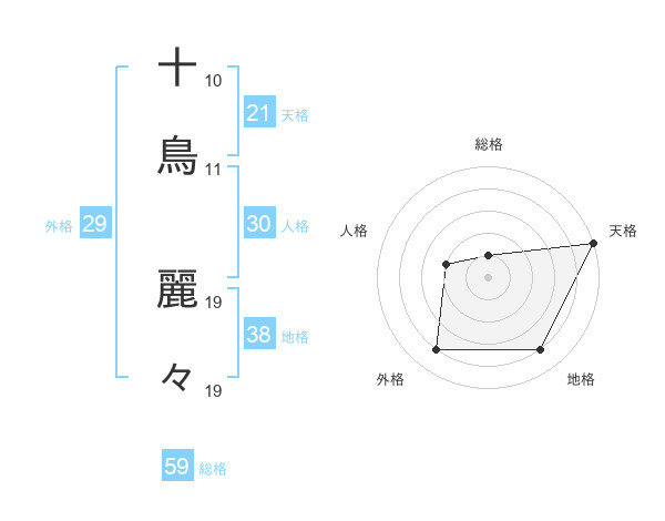 十鳥 麗々さんを姓名の画数から五運を鑑定