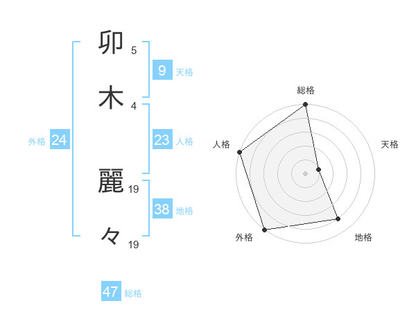 卯木 麗々さんの総格は47画の5点!