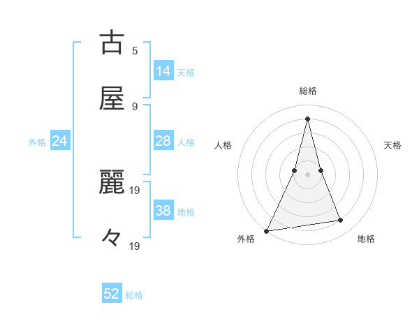 古屋 麗々さんを姓名の画数から五運を鑑定