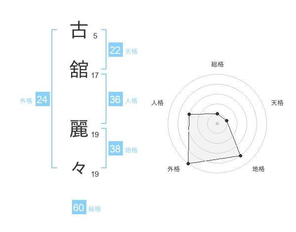 古舘 麗々さんを姓名の画数から五運を鑑定