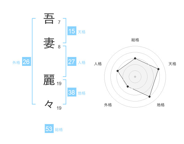 吾妻 麗々さんの総格は53画の3点!