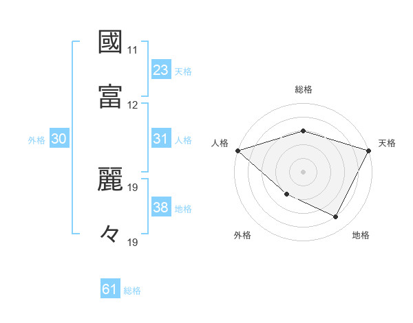 國富 麗々さんの総格は61画の3点!