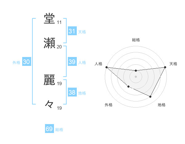 堂瀬 麗々さんの総格は69画の1点!