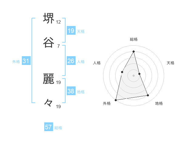堺谷 麗々さんの総格は57画の4点!